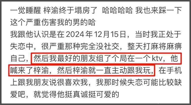 据该网红形色,两东说念主是在KTV意识的,梓渝主动和她玩,当晚就发音书和女网红表白说可爱她,然后两东说念主冉冉有了联系。