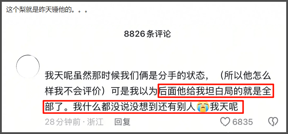 不仅如斯,梓渝还和女方说过牙东说念主让他和前女友离异之类的话,但缄口藏舌是我方劈叉,这和前女友的爆料也对上了。