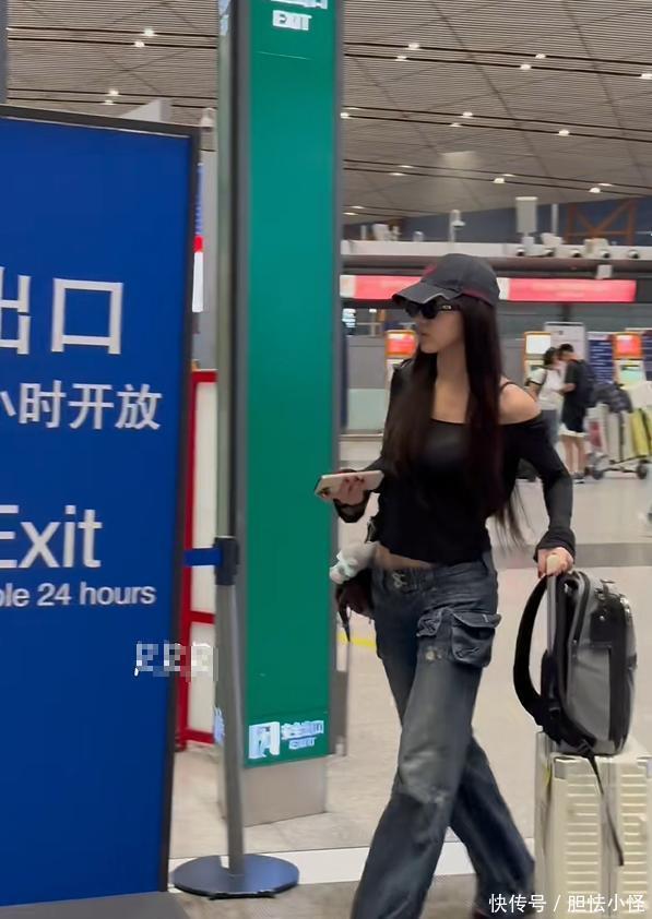 汪峰大女儿独自走在背面,长发披肩戴着墨镜,身穿玄色上衣牛仔裤,打扮得绝顶酷炫。