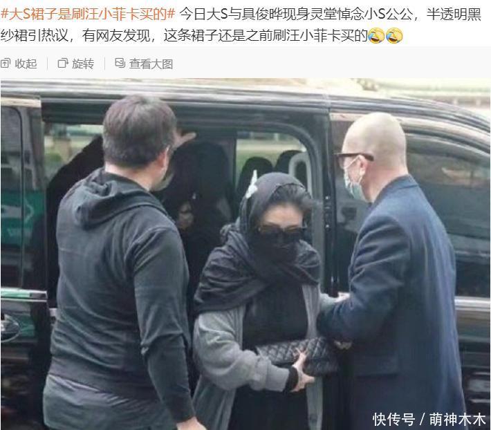 如今网友又发现了,大S在小S公公葬礼上的一整套穿搭,包括争议最大的透视纱裙,齐是大S当初刷汪小菲信用卡买的,连头上戴的白色蝴蝶配饰和脚上的鞋能够率齐是。