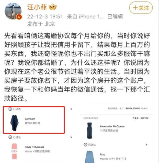 还谨记汪小菲发文叱咤大S和具俊晔一事吗?因为抚养费争议,大S把汪小菲告上法庭,还条款冻结前夫名下财富,汪小菲情怀上面,曝出大S二婚后让具俊晔睡他买的床垫,住进他买的豪宅,还让他交电费,更是晒出了大S仳离后每个月用他的卡刷上百万买东西,连和具俊晔再婚技能使用的钻戒和衣饰。